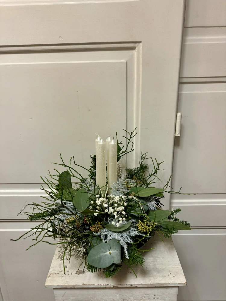 - Adventní dekorace v misce z jedličky a eucalyptu přírodní květinový