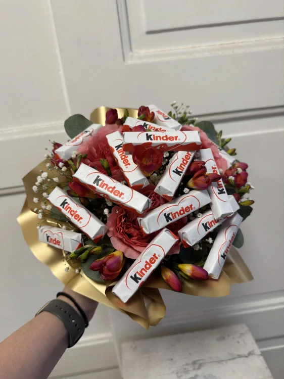 Originální dárkový box, který spojuje krásu čerstvých květin a oblíbenou čokoládu Kinder. Dokonalé překvapení pro každou příležitost – narozeniny, svátek, výročí nebo jen tak z lásky.