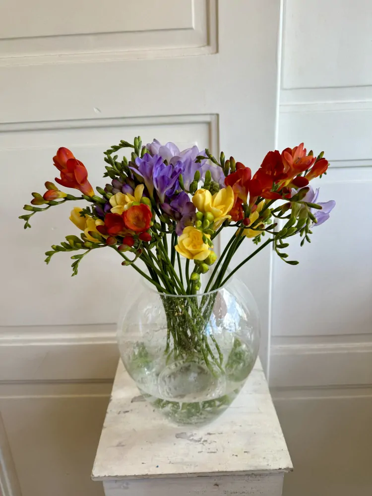 Fresie jednotlivě v různých barvách. Fialová, bílá, růžová, červená, zelená... Taky milujete tu vůni fresií?! Neváhejte si je objednat a my Vám je přivezeme domů nebo do práce :)