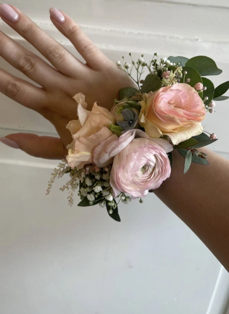 Náramek je lehký, pohodlný na nošení a přizpůsobený tak, aby vydržel po celý svatební den. Květiny vybíráme podle barevného konceptu svatby, aby vše působilo harmonicky a přirozeně.