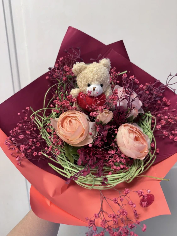 Kytice látkový pryskyřník a sušené květy s medvídkemSkladem690 Kč/ ks570 Kč bez DPH