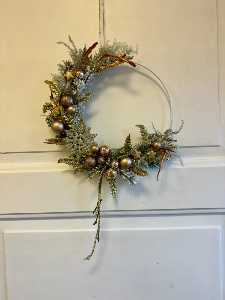 Ručně navázaný věnec na dveře či na položení je plný eucalyptu a asparagusu. Věnec má průměr 33cm (umíme i větší velikosti a i menší -30cm až metr průměr)-ceny takových velikostí na dotaz.