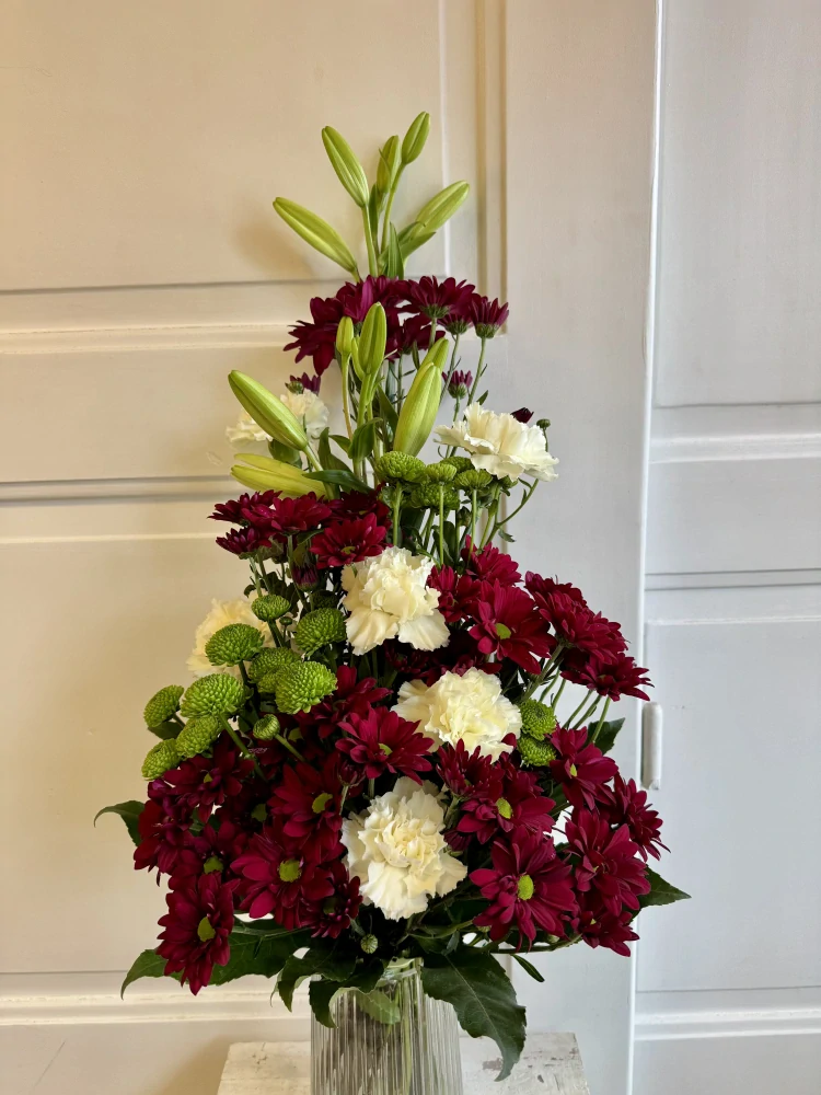 Smuteční kytice - lilie, chryzantémy a karafiáty