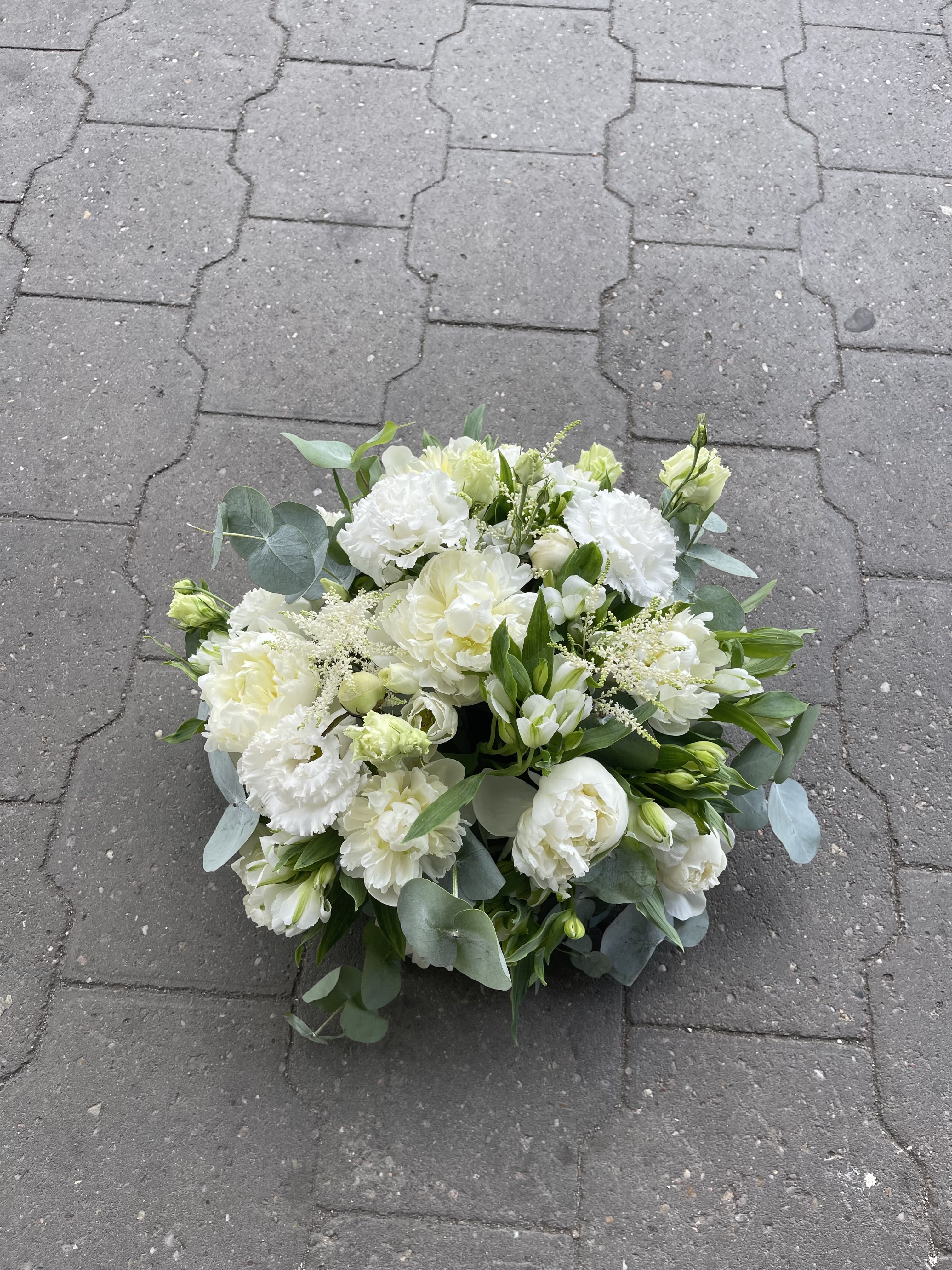 - Smuteční vypichované aranžmá - bílé eustomy