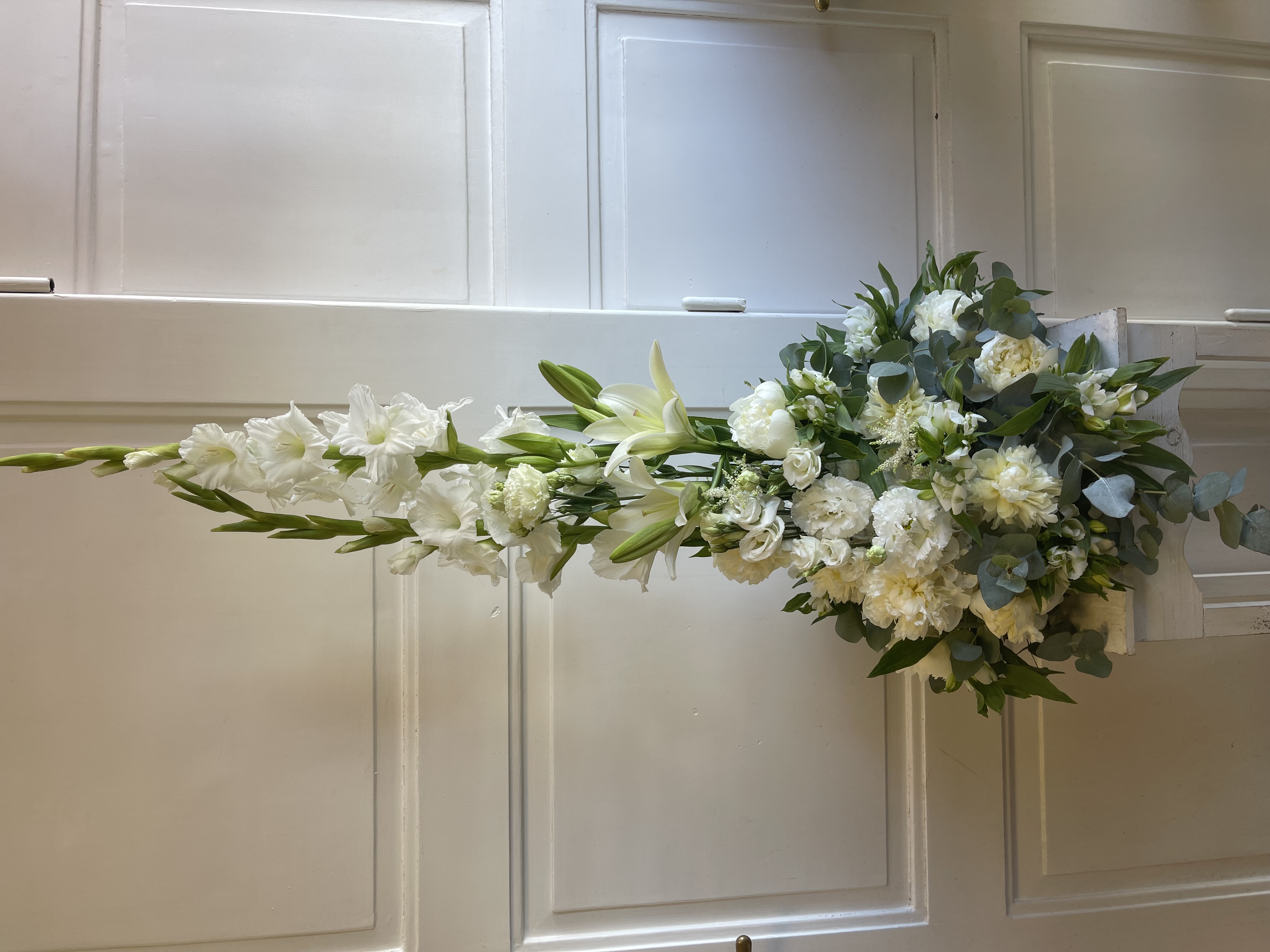 Smuteční vypichované aranžmá - bílé eustomy vysokéSkladem3 690 Kč/ ks3 050 Kč bez DPH