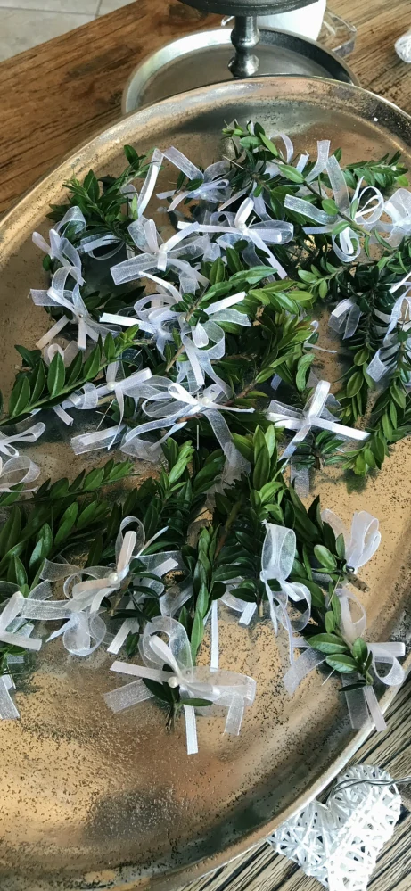 Myrtha pro svatebčany a hosty se špendlíkem a masličkou.