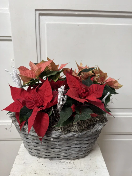 Vánoční hvězdy v koši